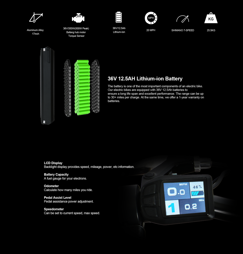 E-TORQUE E-Bike by Eunorau - 36 Volt 12.5 Amps