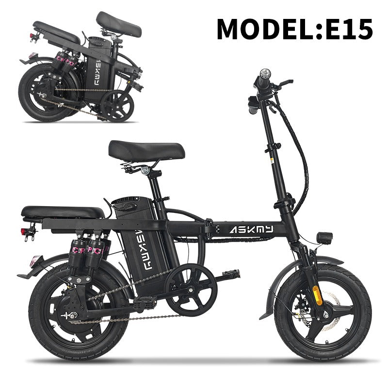 The E15 E-BIKE by ASKMY is an expert-designed, beginner-friendly electric bike ideal for urban commuting and light off-road adventures. It features a lightweight aluminum frame for easy handling and portability, paired with a 350W motor delivering speeds up to 18.7 mph. The removable 48V battery ensures convenient charging wherever you go. With a weight capacity of 220 lbs, the foldable E15 balances practicality and performance, making it a reliable choice for those seeking an efficient, smooth, and affordable electric riding experience.